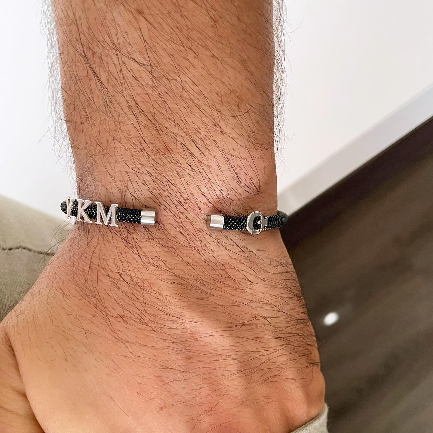 Ürün 14 Ayar Beyaz Altın Harf Detaylı Çelik Bileklik.